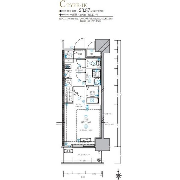 即入居可 C タイプ  賃料 56,000円〜  1K/23.87㎡  共益費 8,000円 印刷