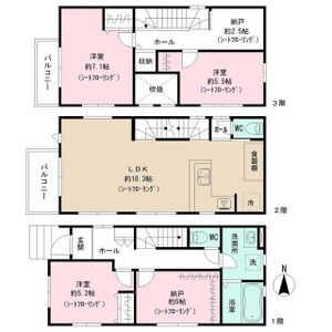 ■3階建ての3LDKで、専有面積は驚異の104.33㎡!!!ファミリー利用でも十二分な広さを確保できる間取りです!!!また納戸が1・3階にそれぞれございますので、物置や子供部屋などとしての利用も可能です!!!